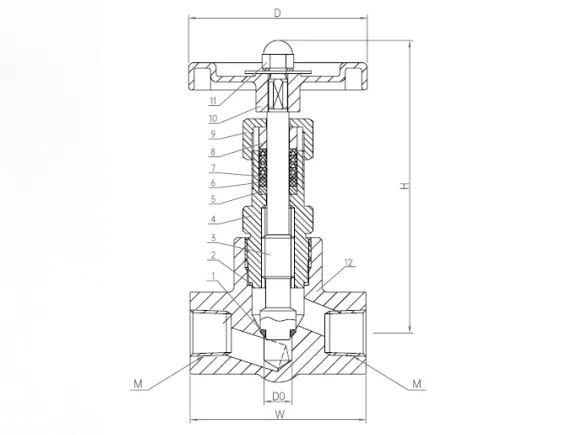 Клапан криогенный запорный с коротким штоком DJ-10P.22.01. (02, 03) устанавливается в криогенных системах на трубопроводах с номинальным диаметром 10 мм. Присоединение к трубопроводу - под резьбу.